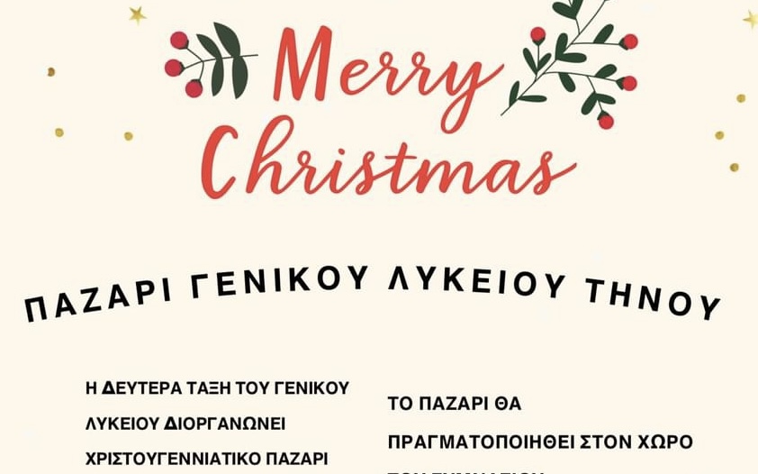 Η β” τάξη του Γενικού Λυκείου Τήνου διοργανώνει Χριστουγεννιάτικο Παζάρι στην Χώρα της Τήνου!