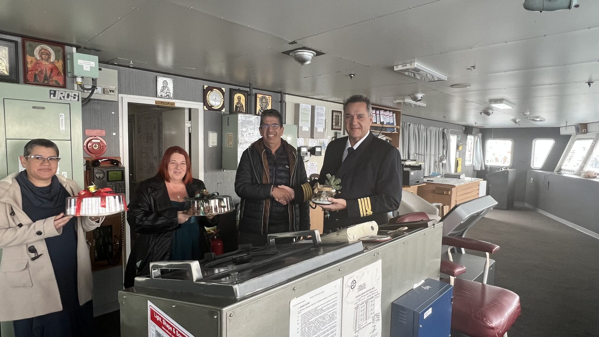 Ο Σύλλογος από την Τήνο πρόσφερε στον καπετάνιο ένα γούρι για τη νέα χρονιά για το καράβι και παραδοσιακά εδέσματα για το πλήρωμα.