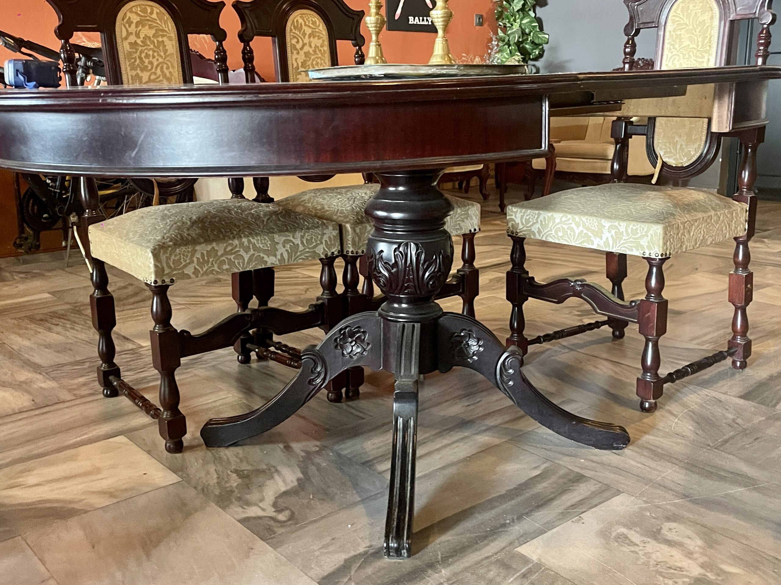 Μια τραπεζαρία ροτόντα με προέκταση και 6 καρέκλες