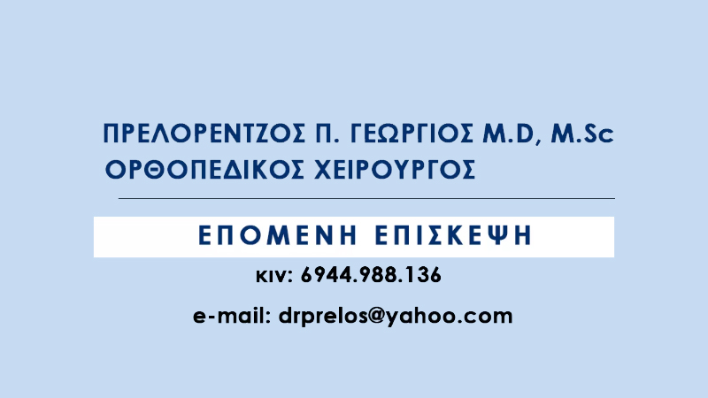 Ο κος Πρελορέντζος αντιμετωπίζει όλο το φάσμα των Ορθοπαιδικών παθήσεων.