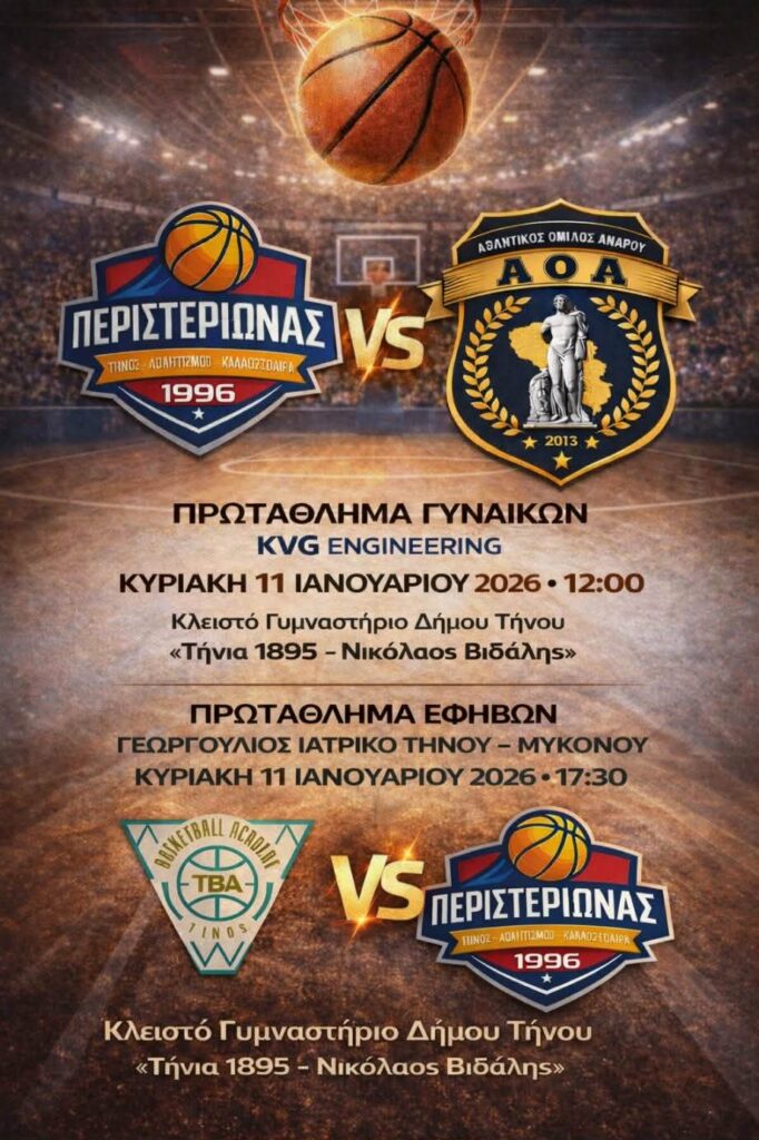 Με δύο αναμετρήσεις ανοίγει η αγωνιστική αυλαία του 2026 για τον Περιστεριώνα Τήνου, την Κυριακή 11 Ιανουαρίου, στο γήπεδο «Τήνια 1895 – Νικόλαος Βιδάλης».