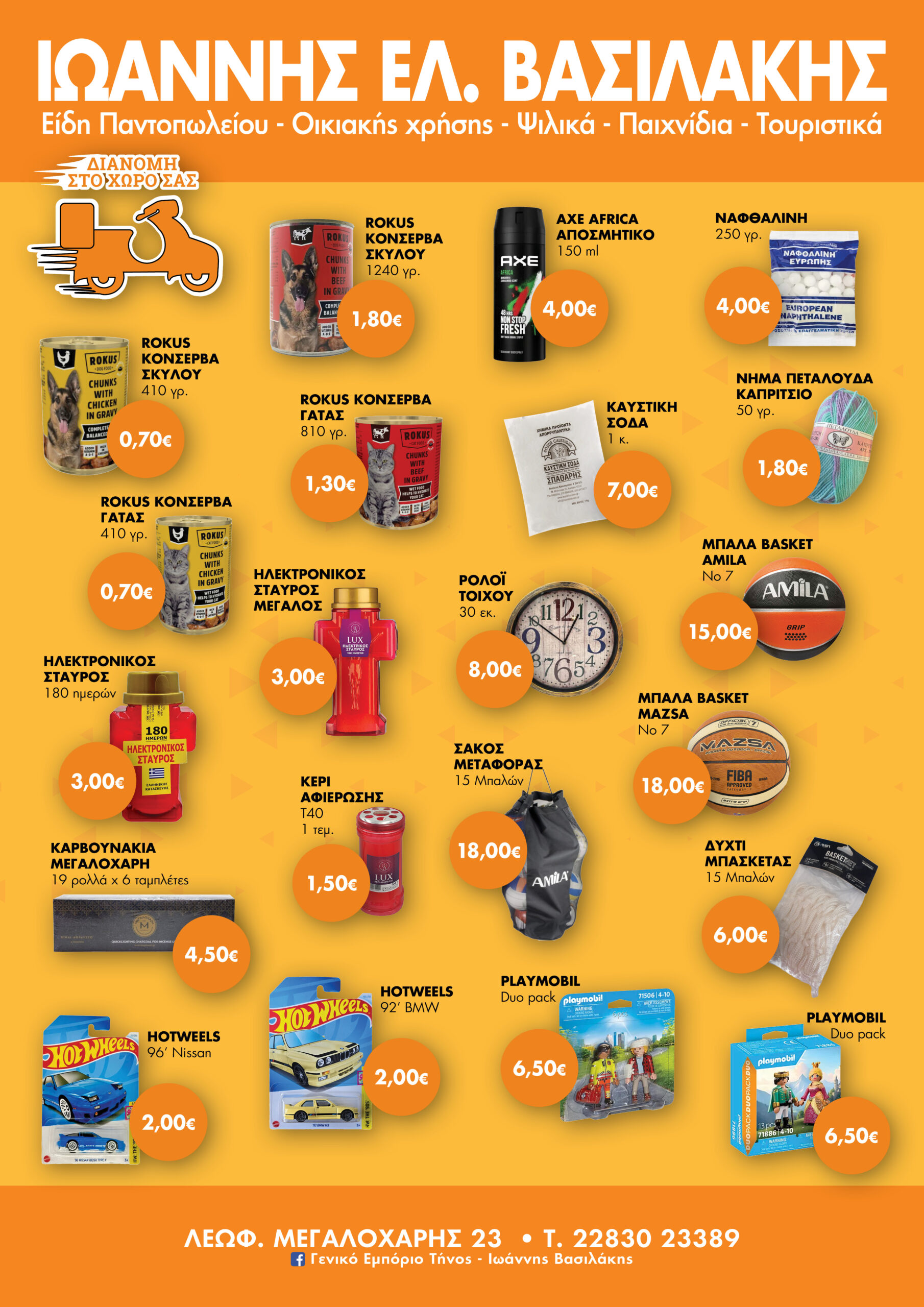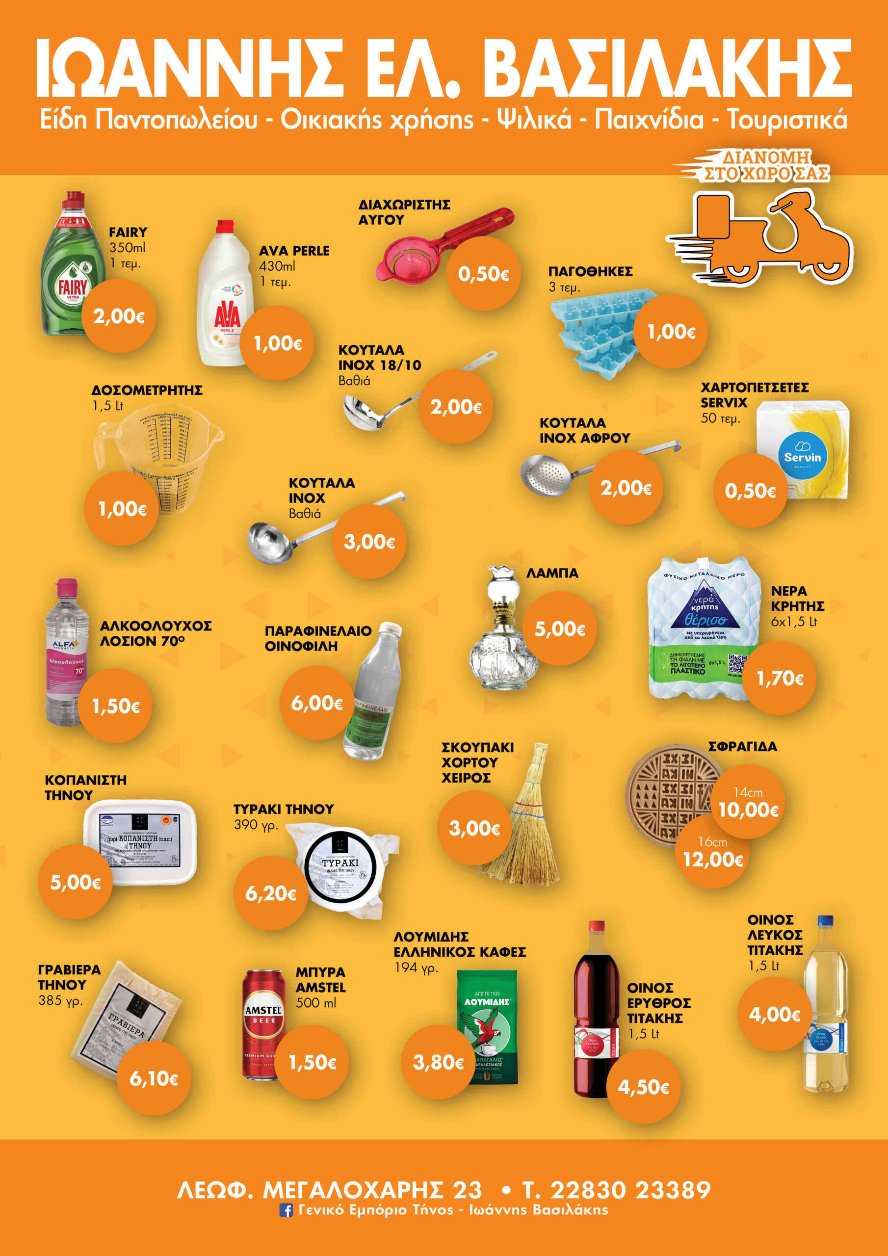 Προσφορές από το Παντοπωλείο “Βασιλάκης” στην Τήνο