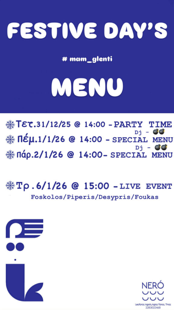 Εορταστικό μενού την 1 & 2 Ιανουαρίου