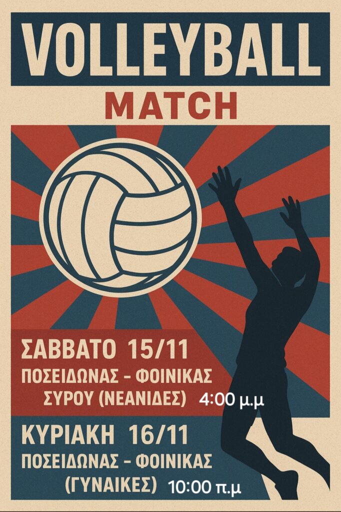 Κυριακή, 16 Νοεμβρίου – Ποσειδώνας Τήνου – Φοίνικας Σύρου (Γυναίκες) 10.00