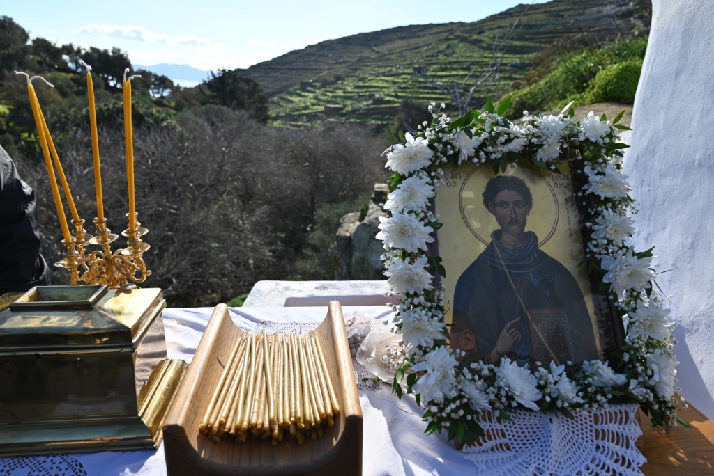 Με την ευλογία του Σεβασμιωτάτου Μητροπολίτου Σύρου και Τήνου κ. Δωροθέου Β’ εορτάσθηκε η ιερά μνήμη του Οσίου Πατρός ημών Ιωάννου του δια Χριστόν πτωχού, του Καλυβίτου, στο ομώνυμο παρεκκλήσιο στην ηλιοέσσα εμβληματική περιοχή “Νερόμυλοι” Ποταμιάς, με την τέλεση του Όρθρου και της πανηγυρικής Θείας Λειτουργίας υπό του Αρχιερατικού Επιτρόπου της Ιεράς Νήσου και του Αρχιδιακόνου.