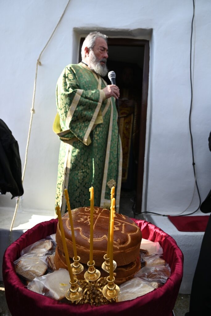 Μετά το πέρας της Θείας Λειτουργίας διενεμήθη σε όλους του πιστούς μικρό εικόνισμα του Αγίου ως ευλογία και ακολούθως παρετέθη μικρά παραδοσιακή δοχή.