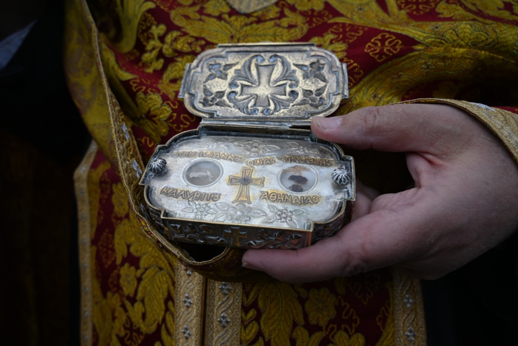 Προς ευλογία και αγιασμό των ευλαβών προσκυνητών είχε διακομισθεί απότμημα εκ του ιερού Λειψάνου του Οσίου.