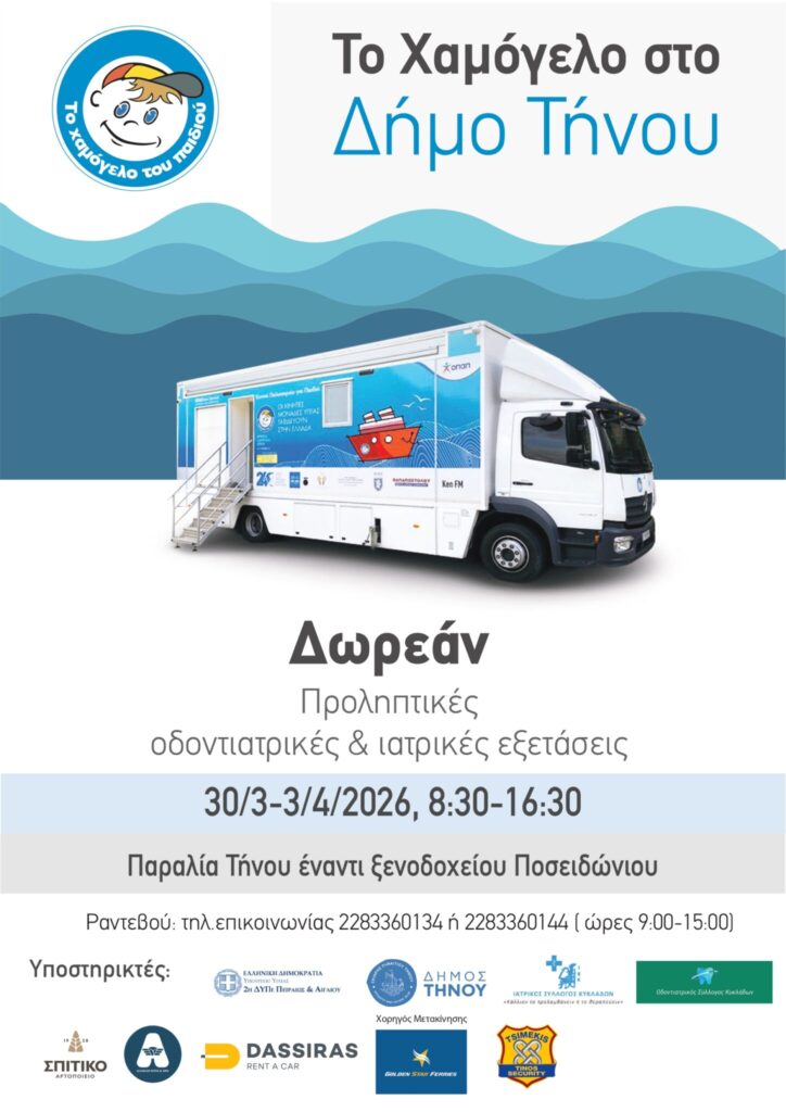 Μετά από αίτημα του Δήμου θα επισκεφτεί το νησί μας κινητή μονάδα Προληπτικής ιατρικής στα πλαίσια των δράσεων του Οργανισμού “Χαμόγελο του Παιδιού”.