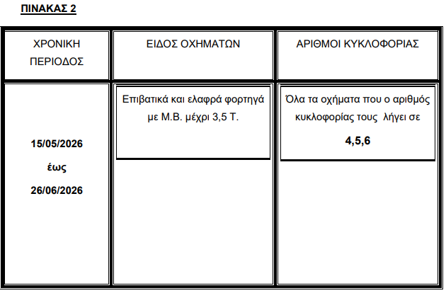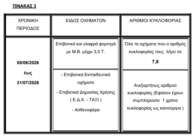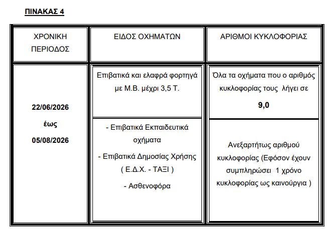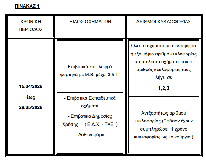 Συγκεκριμένα τα επιβατικά ιδιωτικής και δημόσιας χρήσης, φορτηγά ιδιωτικής και δημόσιας χρήσης, καθώς και οχήματα ειδικών κατηγοριών, στην άδεια κυκλοφορίας των οποίων αναγράφεται ως έδρα η συγκοινωνιακή περιοχή του Δήμου Τήνου , σύμφωνα με το παρακάτω πρόγραμμα: