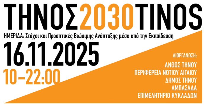 20:30-22:00 «Τήνος 2030: Φάρος πολιτισμού και παιδείας / στόχοι και σχεδιασμός» (Συντονισμός: Παναγιώτης Κακολύρης)