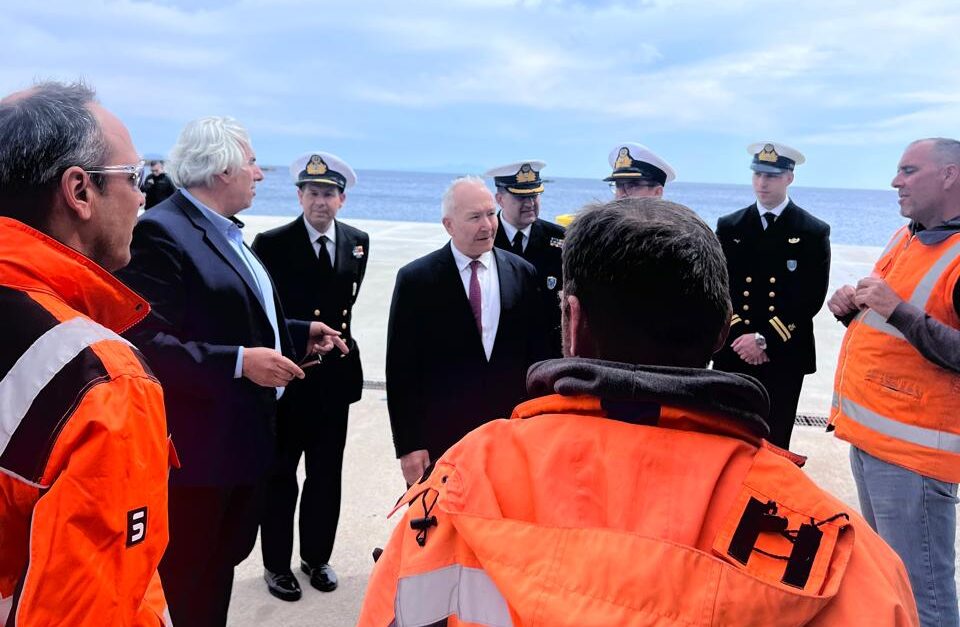 Η επίσκεψη ολοκληρώθηκε με αυτοψία στον έξω λιμένα, όπου ενημερώθηκε για την επιτυχή ολοκλήρωση των δοκιμαστικών προσεγγίσεων και προσδέσεων πλοίων.