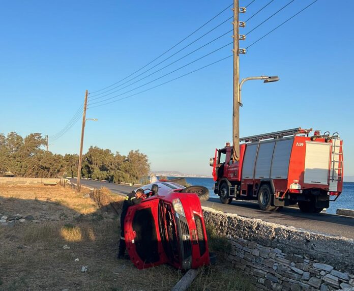 Το αυτοκίνητο ερχόμενο με κατεύθυνση την πόλη της Τήνου έχασε τον έλεγχο πριν την επιχείρηση “Nero” με αποτέλεσμα να χτυπήσει στη κολώνα της ΔΕΗ και να βγει εκτός δρόμου.