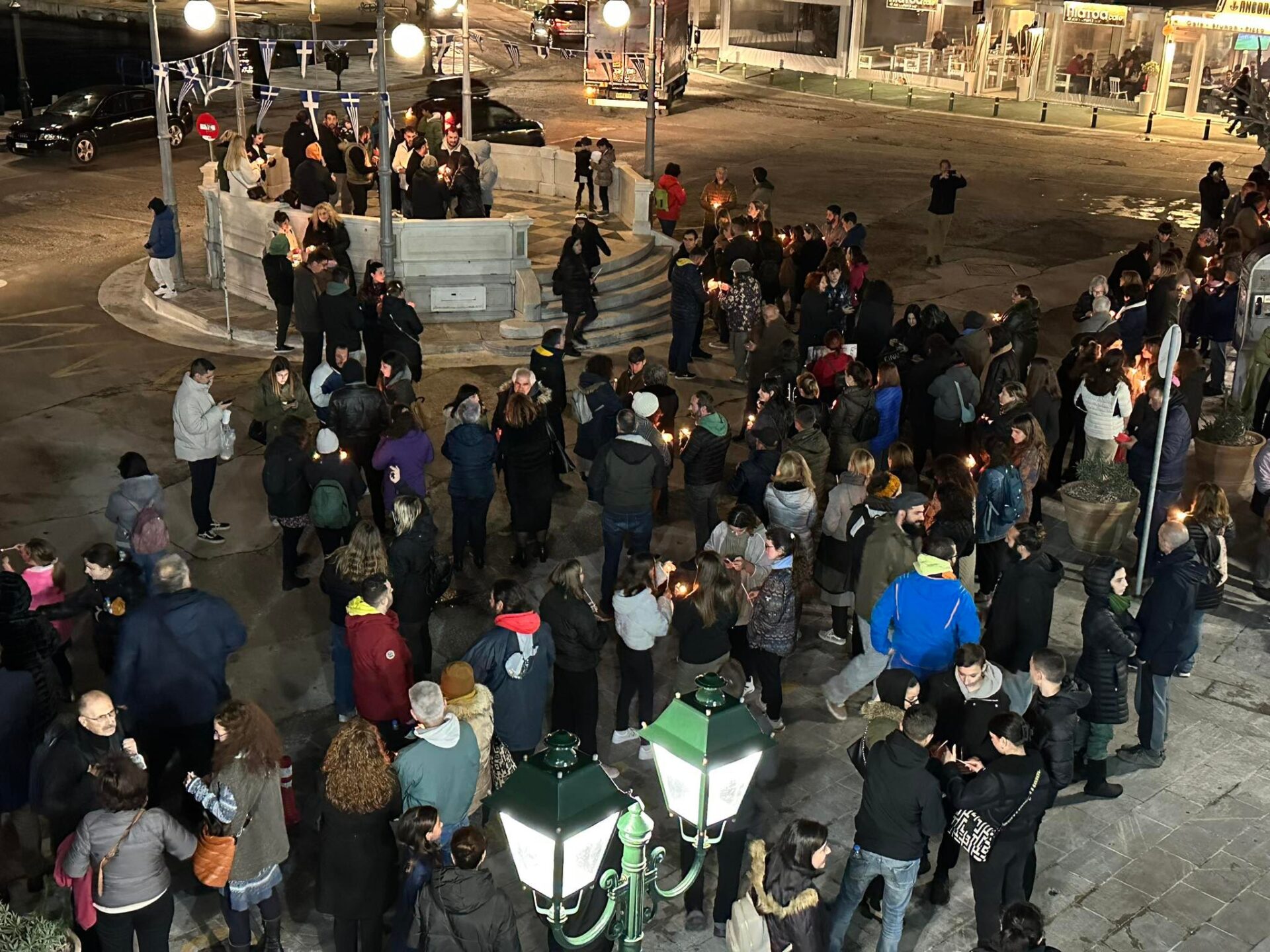 Πλήθος κόσμου ανταποκρίθηκε σήμερα, Κυριακή 5 Μαρτίου 2023, στο κάλεσμα της Ανοικτής Επιτροπής Αλληλεγγύης Τήνου σε ειρηνική διαμαρτυρία στη μνήμη των αδικοχαμένων επιβατών στα Τέμπη. Οι πολίτες συγκεντρώθηκαν λίγο μετά τις 7 απόγευμα στην πλατεία Παντανάσσης. Μεταξύ των πολιτών και παιδιά – μαθητές με αυτοσχέδια πανό στα χέρια.