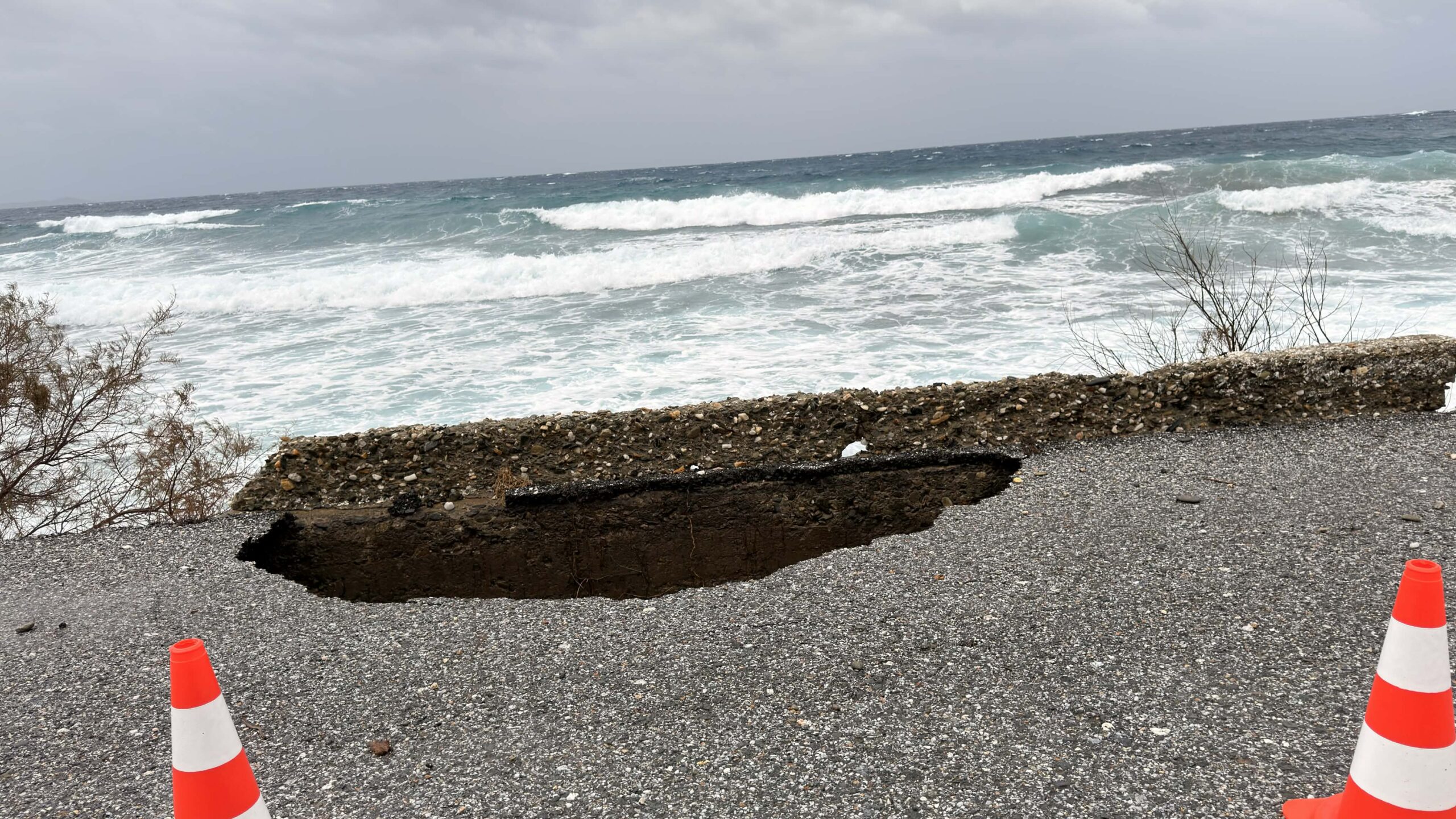 Σημαντικές ζημιές προκάλεσαν οι ισχυροί νοτιάδες των τελευταίων ημερών στην παραλία του Αγίου Φωκά, επηρεάζοντας τόσο την ακτογραμμή όσο και το οδικό δίκτυο.