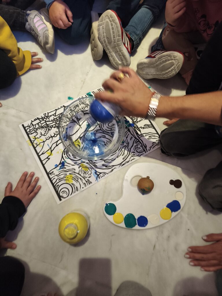 Οι μικροί επιστήμονες στο ατελιέ της φύσης ψάχνουν για τα Χριστούγεννα στροβιλίζοντας τα αστέρια της «έναστρης νύχτας» του VanGogh.
