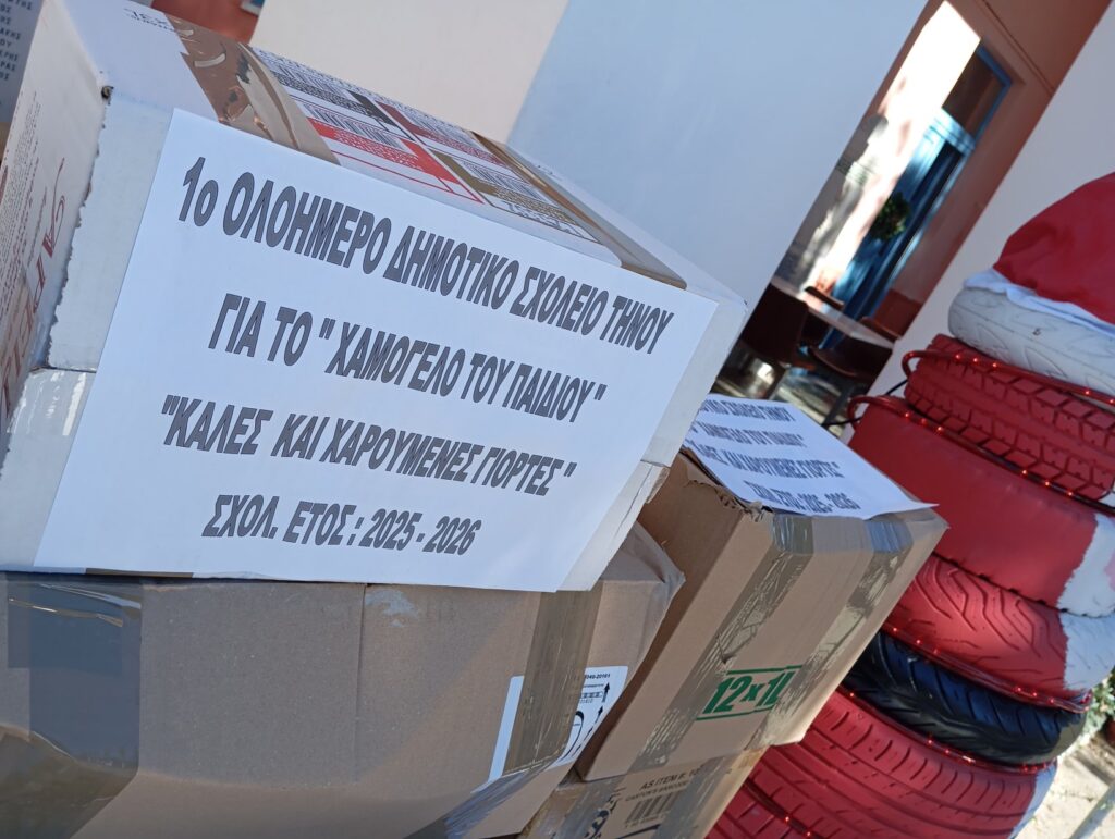 Για ακόμη μία χρονιά, οι μαθητές και οι μαθήτριες όλων των τάξεων του 1ου Δημοτικού Σχολείου Τήνου έδειξαν έμπρακτα την αλληλεγγύη και την ευαισθησία τους, συγκεντρώνοντας τρόφιμα και είδη πρώτης ανάγκης για τον οργανισμό «Το Χαμόγελο του Παιδιού».