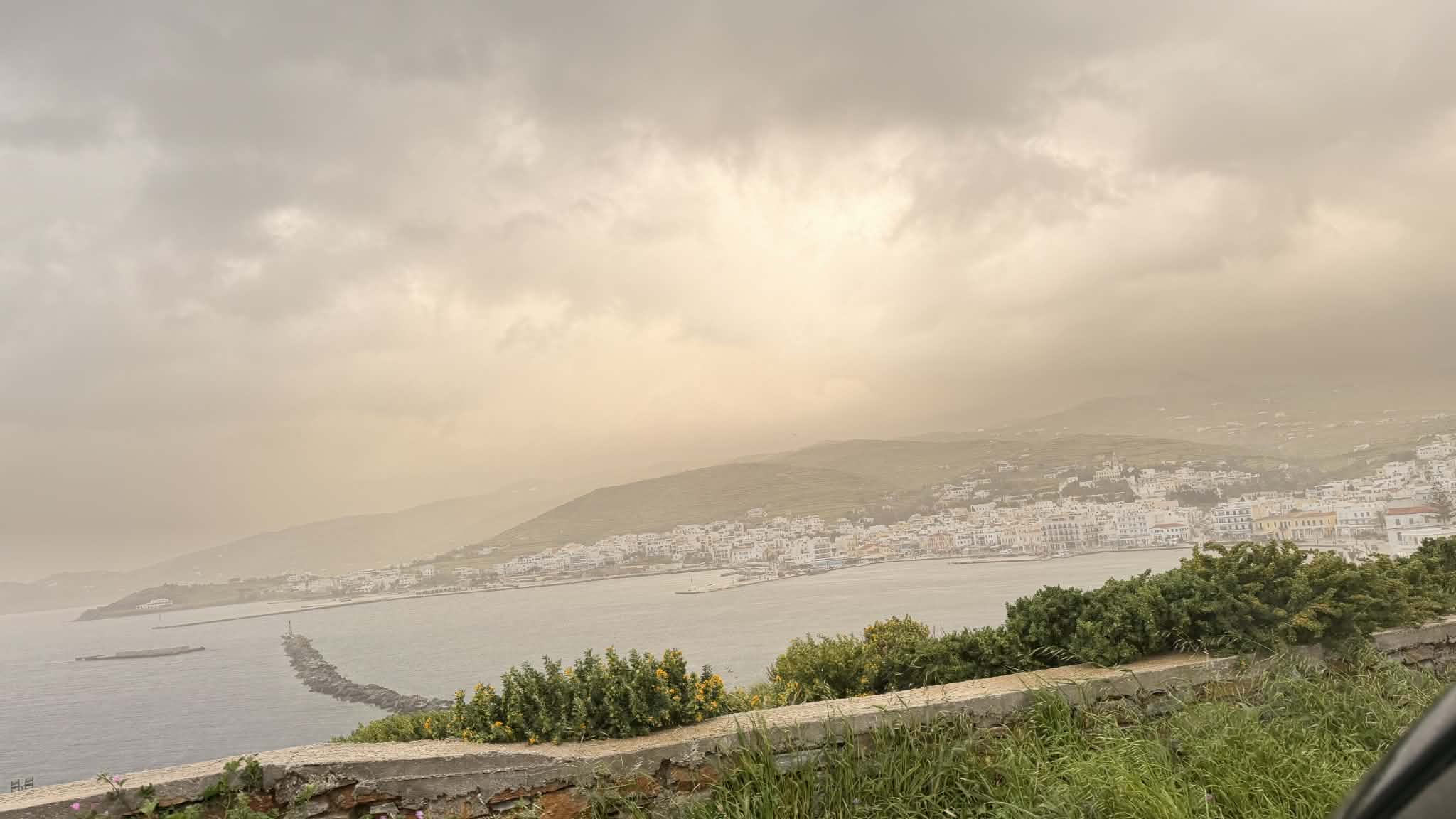 Έντονη είναι η παρουσία σκόνης στην ατμόσφαιρα της Τήνου λόγω της κακοκαιρίας και των νοτιάδων, ενώ κλειστά θα παραμείνουν και αύριο τα σχολεία στο νησί.